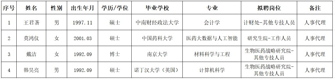我校经公开发布招聘信息,认真组织资格审核、面试等环节,确认拟予录用以下人员,现将其基本情况公示如下: